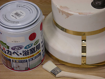市販の浴室壁用などの水性塗料をご使用ください。つや無し、アイボリーに近い色を塗ってありますが、他の色で塗装することも可能です。