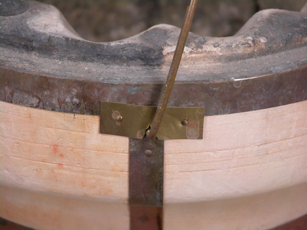 鉄瓶との摩擦で、鋲の内側3箇所がかなり減っています。