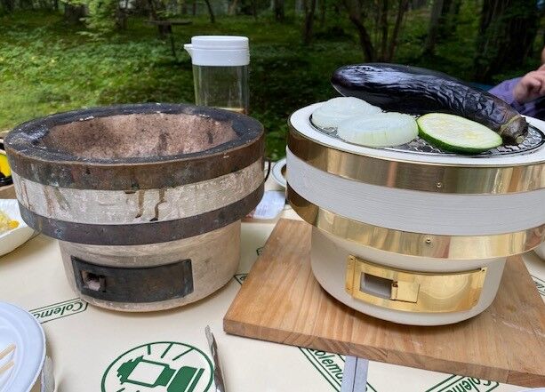 左)15年ご使用いただいた「お卓の七輪」 右)その新品