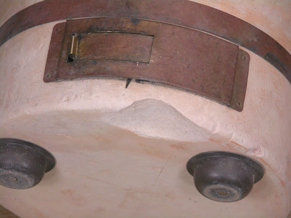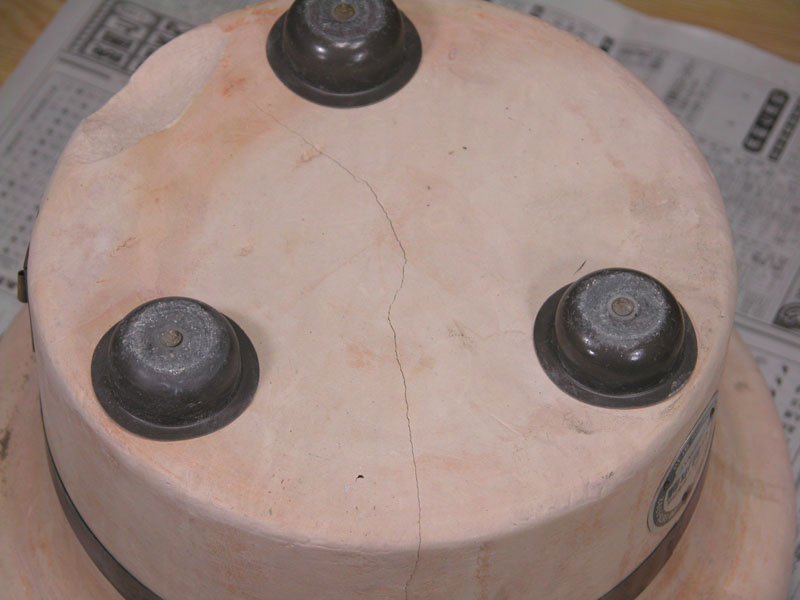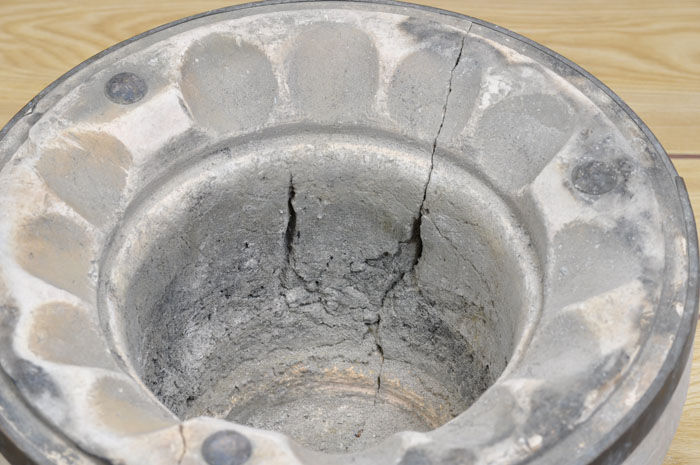 加熱により七輪の内側の珪藻土が縮み、ひび割れ、七輪の変形(やや楕円になっています)が起こります。