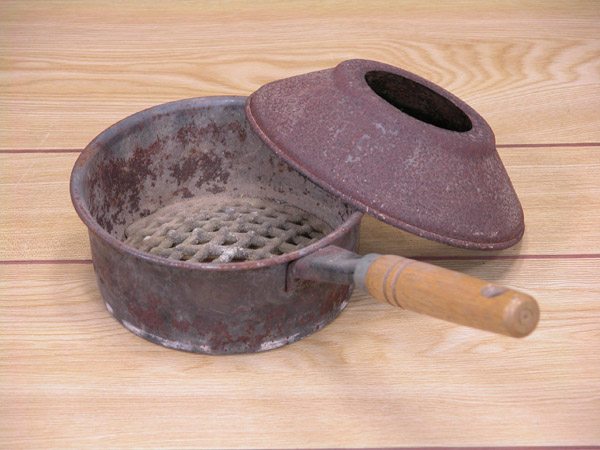 着火しましたら、火起し器を台十能に重ねて、七輪や火鉢に運びます。