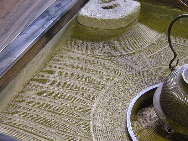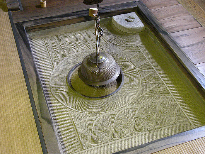 この囲炉裏の灰模様は毎朝描かれます。模様がくずれなければ描き直す必要はないように思われますが、そういう問題ではないようです。