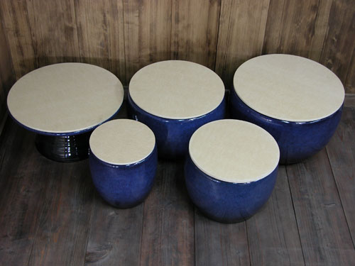 円卓にするにもよい形状の「開花火鉢」です。開花火鉢はこちら 丸火鉢はこちら
