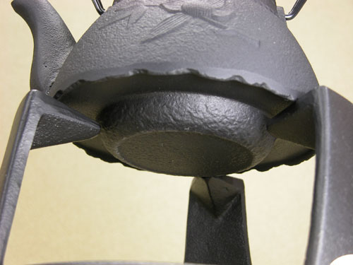 ツバ付きの鉄瓶は底形状が特殊ですから、五徳の内径に注意してください。