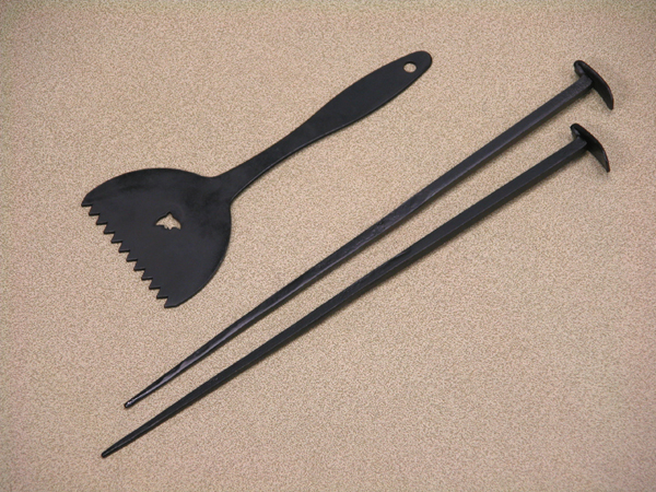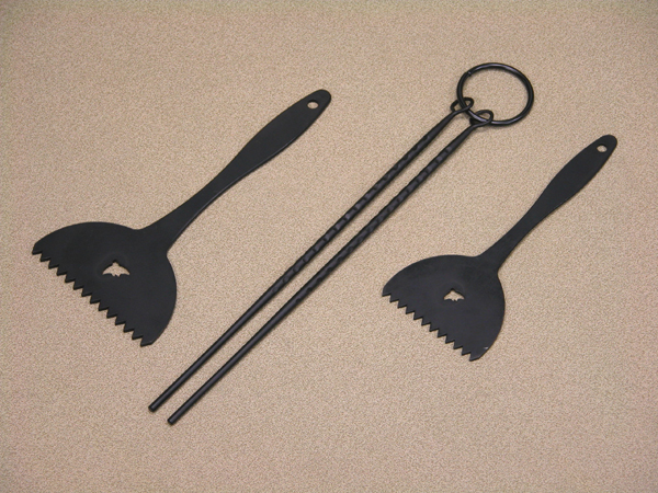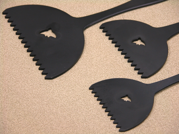 鉄板を切り抜いたシンプルな灰ならしで、大・中・小で波形の大きも異なります。