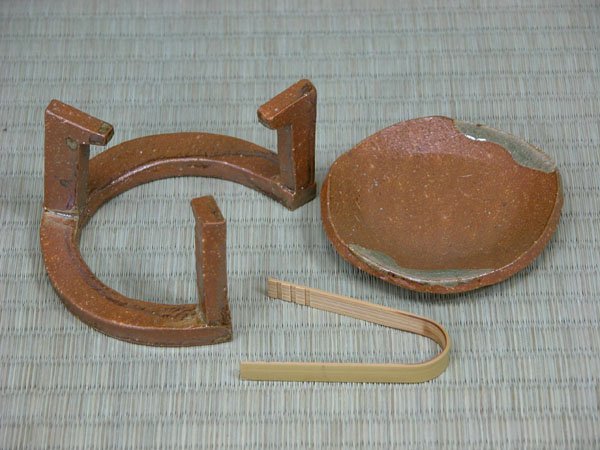 皿は高温になりますので、火傷にご注意を。※伊賀焼きは熱に強い陶器ですが、五徳や皿を直接炭火に接触させるとひび割れの原因となります。