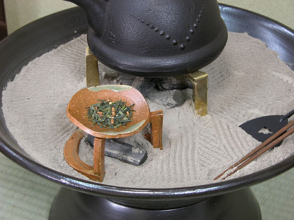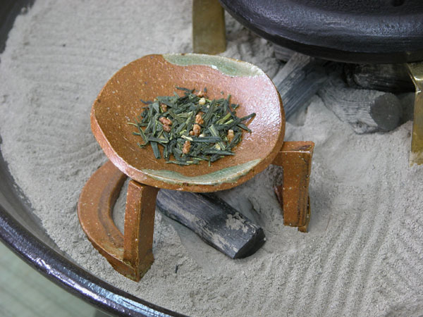 茶葉をのせ、小さな炭火を下に置くと、お茶の香りが広がります。