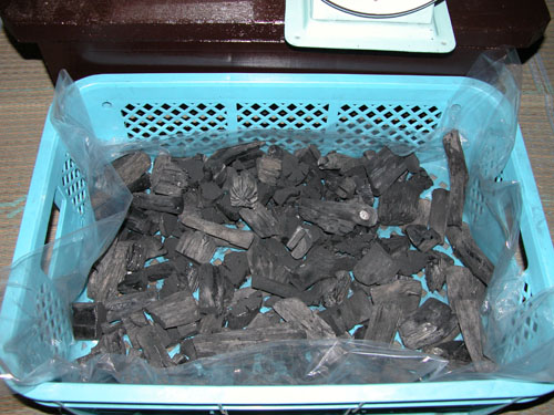 ほぼ完全乾燥した備長炭3kgを測ります。