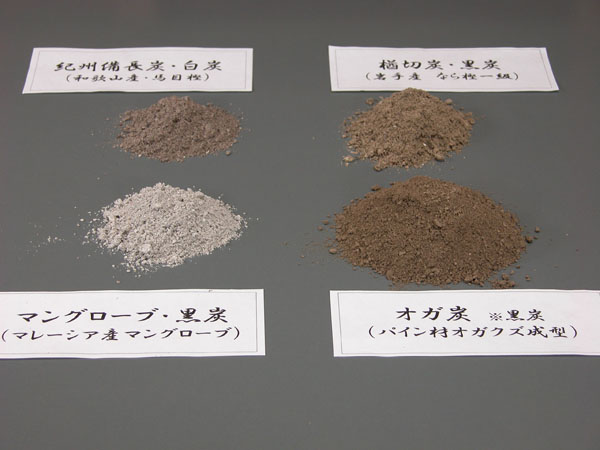 囲炉裏や火鉢では元の灰と混ざってわからなくなるので、七輪を使っての実験です。