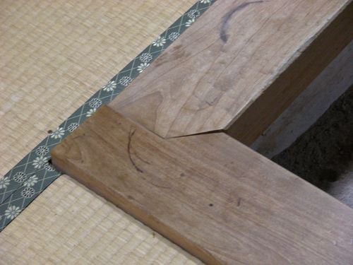 炉縁の接ぎ方は、継手や仕口の専門書を見ても載っておらず名称が不明です。