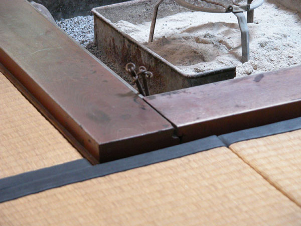 飾りを設けた珍しい炉縁です。