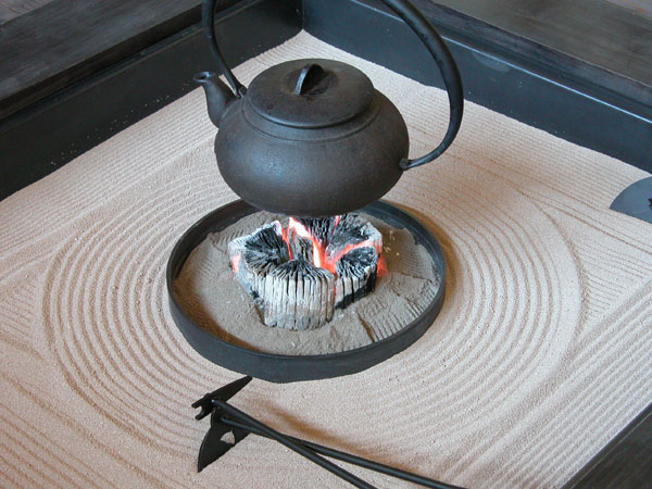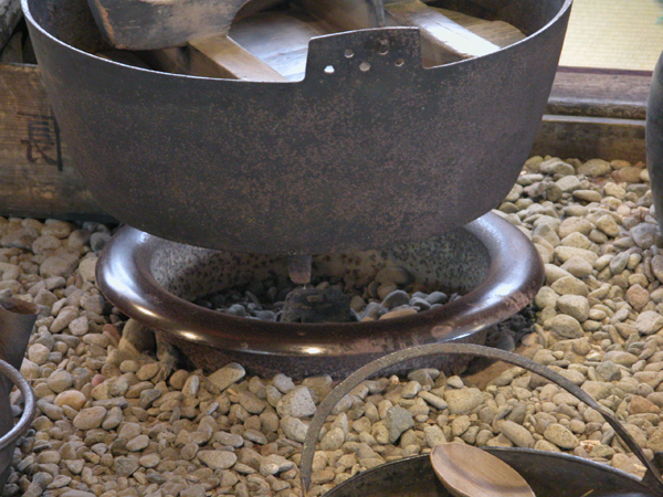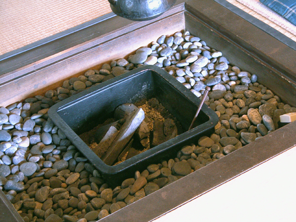 外側を砂利にすることで鉄瓶や鍋などの道具を置いたり、