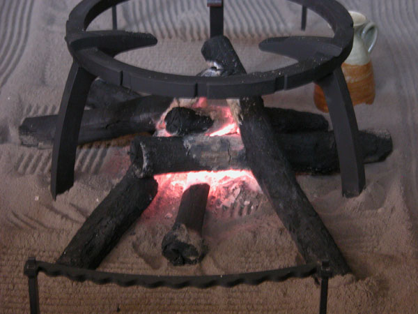 囲炉裏の熾き火を掻き出して下に入れて使います。
