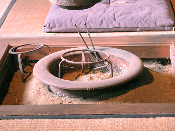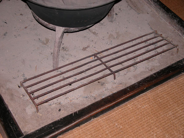 自在鉤を使わない囲炉裏には内炉に五徳を置いて使います。