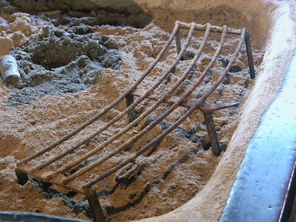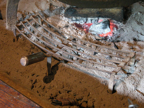四角形の内炉で、灰が掻き出せるように、一部(左側)が取り外せるようになっています。周囲は砂利敷きです。