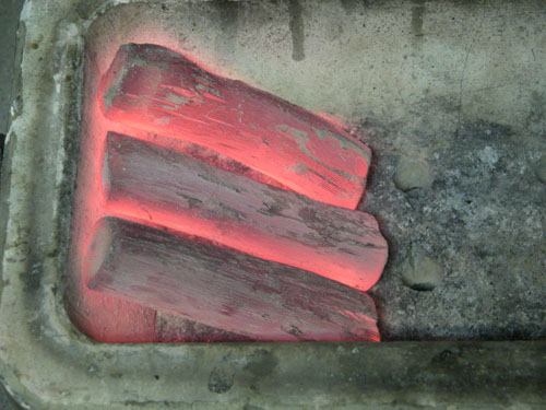 このような長い黒炭を使うと薪感覚の囲炉裏となります。