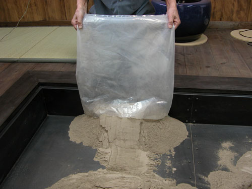 囲炉裏や火鉢に灰を入れると、部屋中が白くなるほどのホコリが立ってしまうことがありますが、この方法ならかなりホコリが少なくなります。