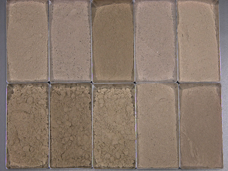 サラサラしたもの、モロモロしたもの、粒子の大小、比重の大小など、
