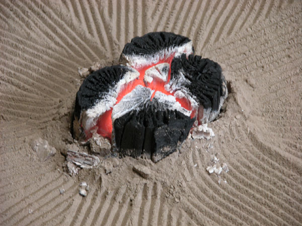 木炭からでる木灰(天然ミネラル)の付着が係わっているかもしれません。