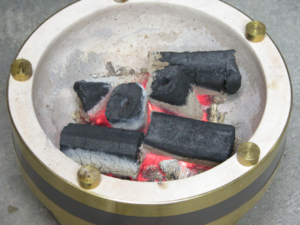 お店では火種コンロを使用して、お客様の来られる前に着火させておくのが一般的です。