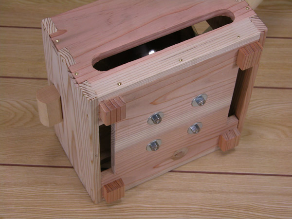 ステンレス台十能の敷板の代わりに木箱を取り付けたものです。
