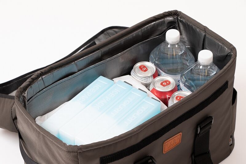 保冷バッグとしても使え、キャンプ場などでの食品の買い出しにも便利です。